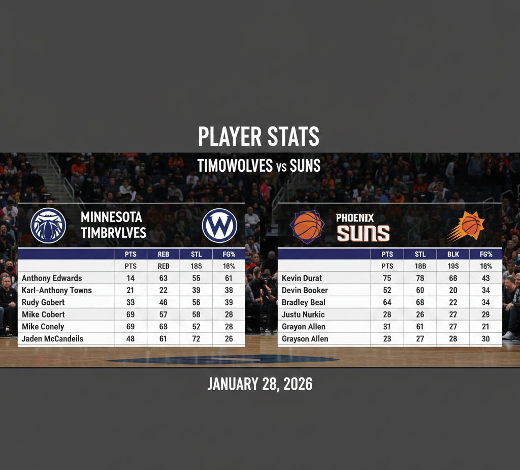 The Timberwolves vs Phoenix Suns match player stats have been a key topic among NBA fans and analysts, especially as both teams continue their fierce Western Conference battles. The Timberwolves and Suns have met several times in recent seasons, producing exciting finishes and standout individual performances. This article breaks down the most recent Timberwolves vs Phoenix Suns match player stats in great detail, offering insights into scoring, rebounding, assist numbers, shooting efficiency, and the impact every major contributor had on the outcomes.